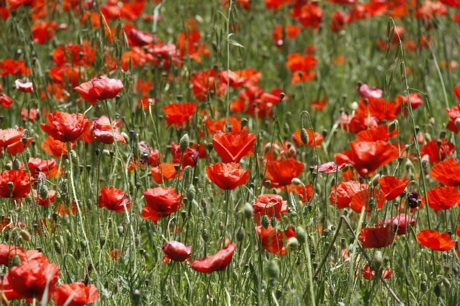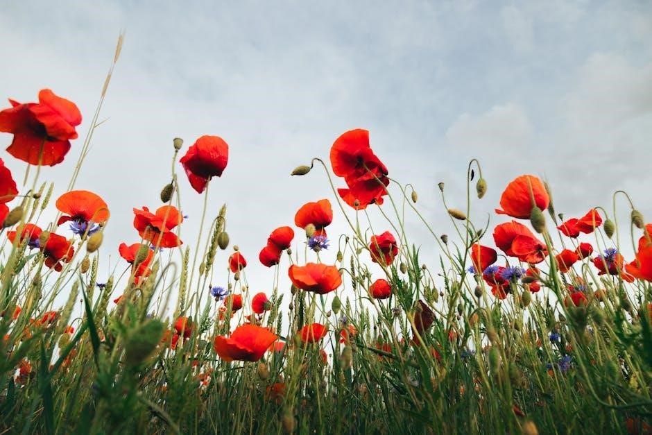 Explore diverse free PDF remembrance poppy knitting patterns, ranging from simple beginner brooches to intricate, textured floral designs, readily available online!