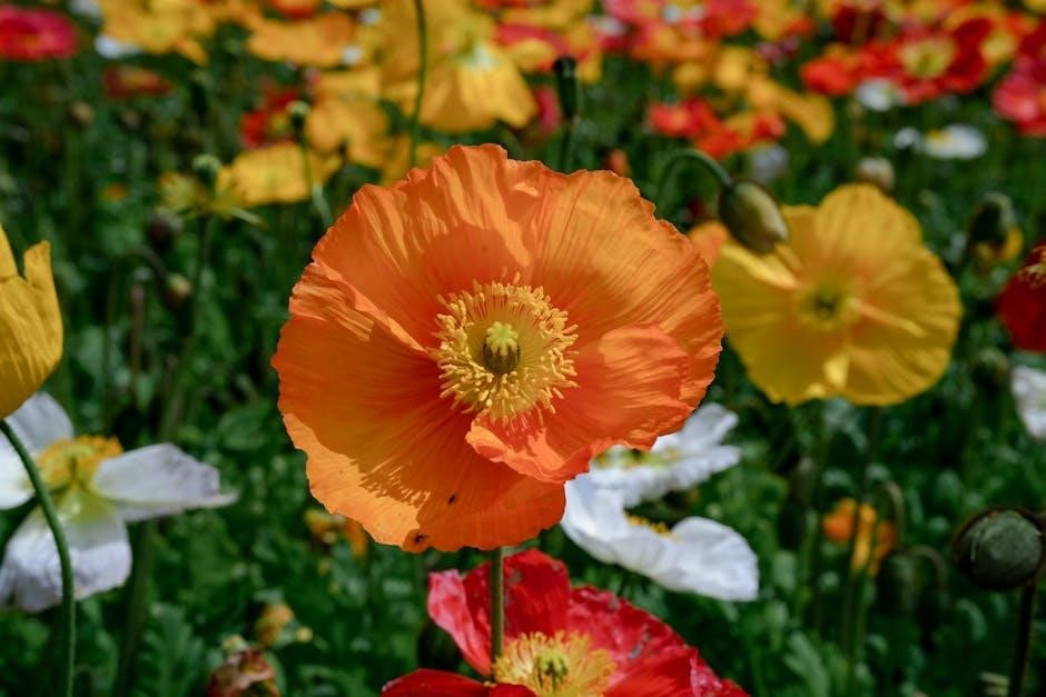Explore free PDF patterns offering techniques like shaping petals, adding intricate details, and utilizing varied yarn weights for lifelike poppy creations.